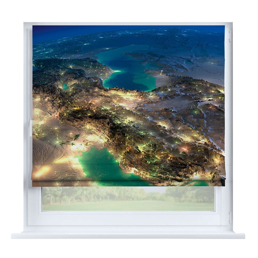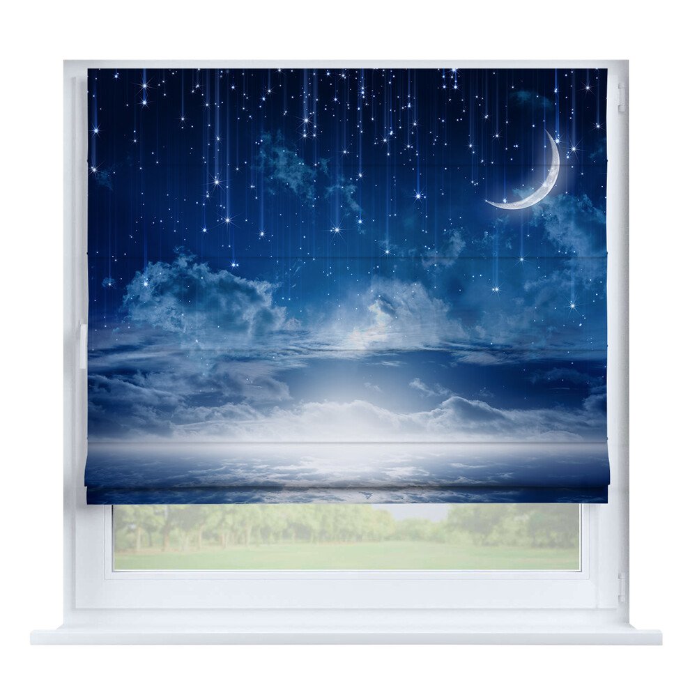 Римская штора день-ночь «Вечерний город», карниз верёвочный